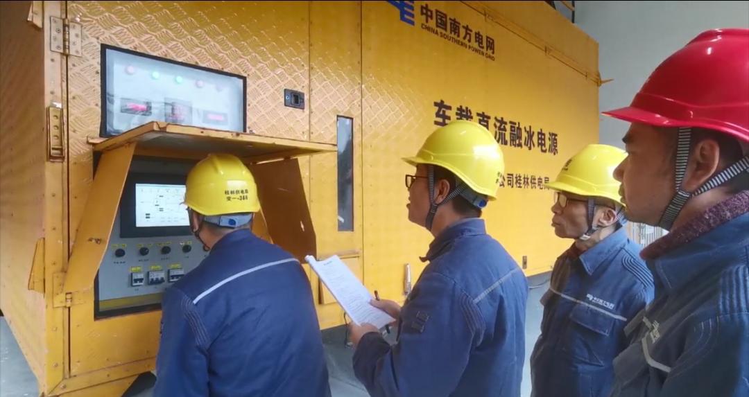 目前,桂林供电局已在桂北等高寒山区重要线路配备了18套直流融冰装置,一旦线路满足融冰条件,可以立即启动直流融冰。