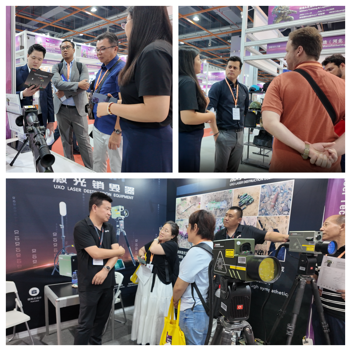 展会现场,钱柜qg777激光的军工级激光销毁解决方案引发了全球防务客户的高度聚焦。我们的技术团队以专业而热情的态度,为每一位到访者详细讲解设备的工作原理和独特优势。他们认真聆听我们的技术讲解,不时就设备性能、操作细节和实战应用提出问题。我们的团队成员结合丰富的项目经验,用通俗易懂的语言解答各类专业疑问,让客户充分理解这项创新技术的价值。