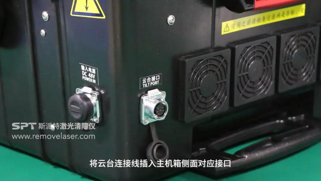然后将云台连接线插入主机箱侧面对应接口